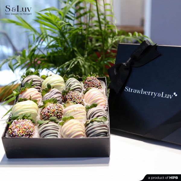 Thơm ngon, thanh mát và độc đáo trong hương vị là những gì mà Hộp Dâu tây bọc Socola vui nhộn sẽ đem đến cho bạn. Ngoài 3 loại Chocolate đen, dâu, sữa, Dâu tây còn kết hợp với chocolate có hương vị tươi mát từ các loại trái cây nhiệt đới: chanh (màu vàng), cam (màu cam), táo (màu xanh) và nho (màu tím).
